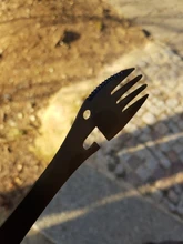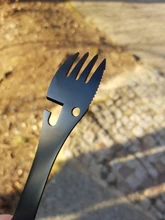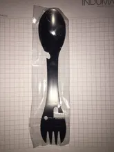 Spoon-fork rather fork-opener, because the spoon itself is very flat. And so, the metal is thick, looks durable, the opener is sharp. The metal is magnetized. Everything is even, without marriage, without scratches, but i think it was worth taking the usual, not black, so that it definitely did not fit.