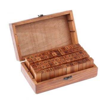 Vintage Number and Alphabet Letters Wooden Rubber Stamps with Wooden Box