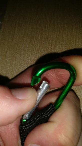 Carabiner and holder metal, strong. But the sling is so, but 0.5 withstands.