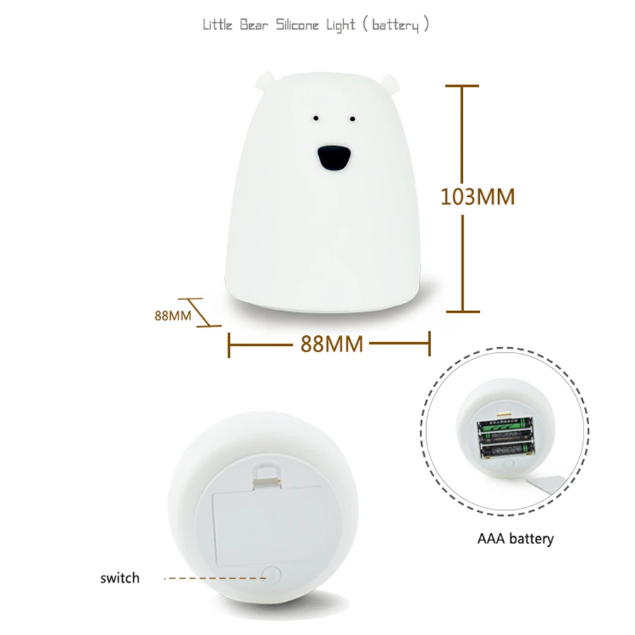 This bear lamp is beautiful. All functions as described by the store. It is soft and ideal for children. It gives a nice, warm light and colorful. Shipment about 20 days. Well packaged and in a box with instructions.