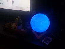 The moon lamp is manufactured using 3D printing technology and produced from a biodegradable and renewable material. It operates using energy efficient LED lights and supports USB charging. Contains a built-in rechargeable lithium battery.