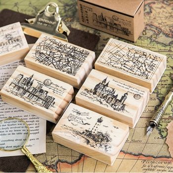 Vintage City Map Pattern Wooden Rubber Stamps for Scrapbooking
