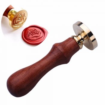 Round Rose Pattern Wax Seal Stamp with Wooden Handle