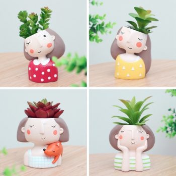 Mini Bonsai Cactus Plant Cute Girl Flower Pot